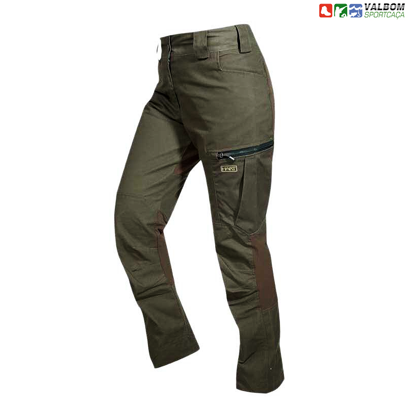 Todo o ano esportivo ao ar livre e calças de caça com painéis elásticos nos joelhos e nas costas para maior conforto. Tecido encerado de composição algodon para função water repelent.