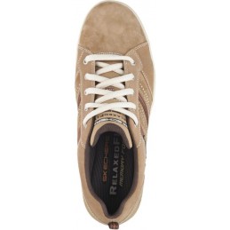 O estilo casual e confortável atinge um novo nível com o sapato SKECHERS Relaxed Fit®: Sorino - Evole. Pele de porco macia e macia em nobuk e parte superior de camurça em um tênis casual confortável oxford com costura e detalhes sobrepostos. Palmilha Memory Foam.