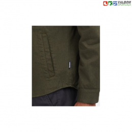 Confecionada a partir de uma sarja de fio trançado para um toque texturizado, esta camiseta simples é a capa perfeita para a temporada. Com fecho na frente e bolso no peito com tachas, a camiseta tem acabamento em xadrez tartan na gola interna.